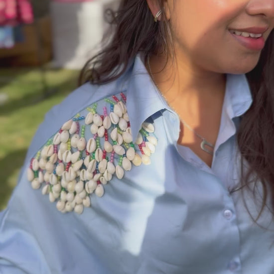 Colour: Blue, Pearl Sleeve Length: Full sleeves