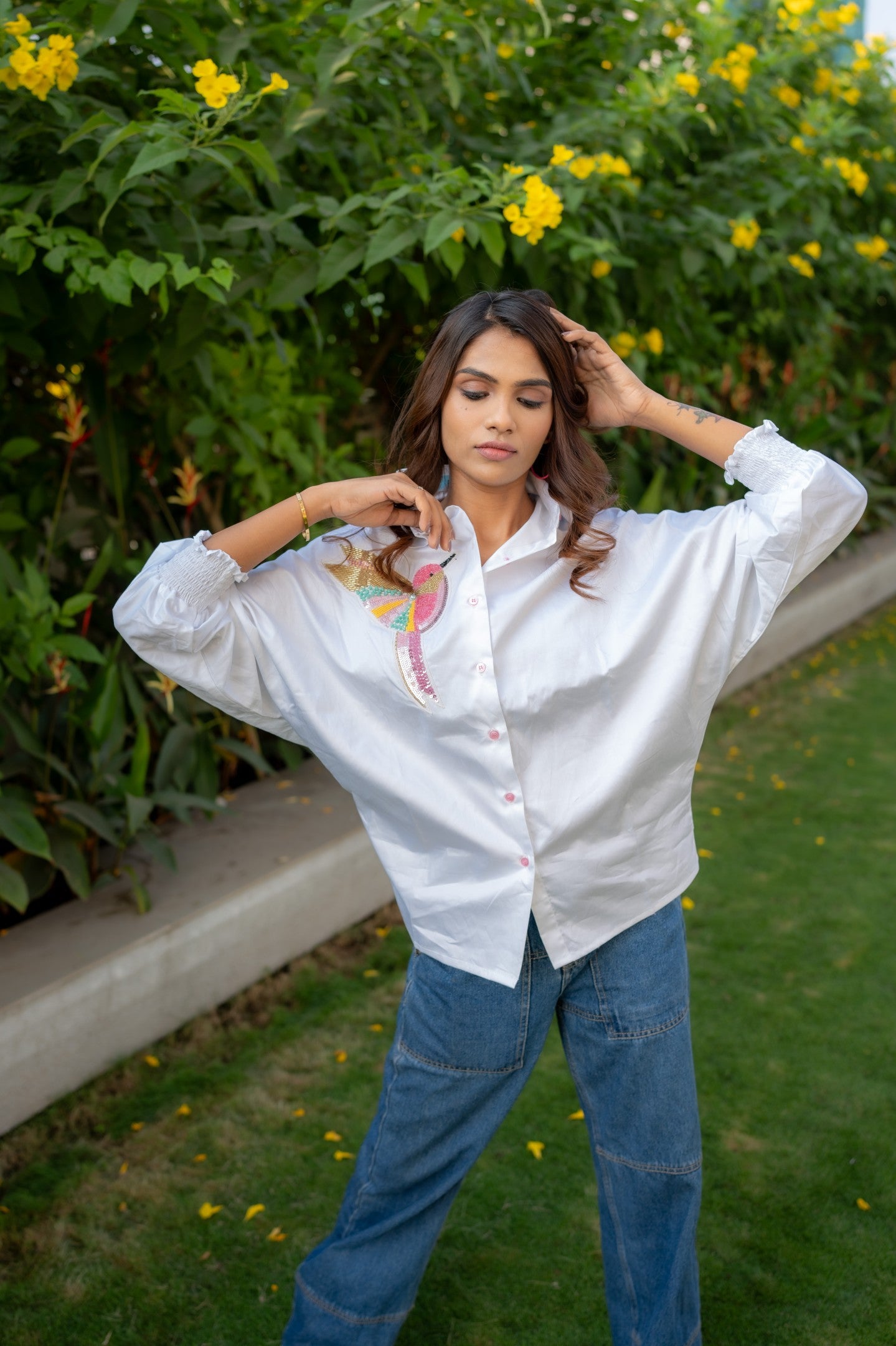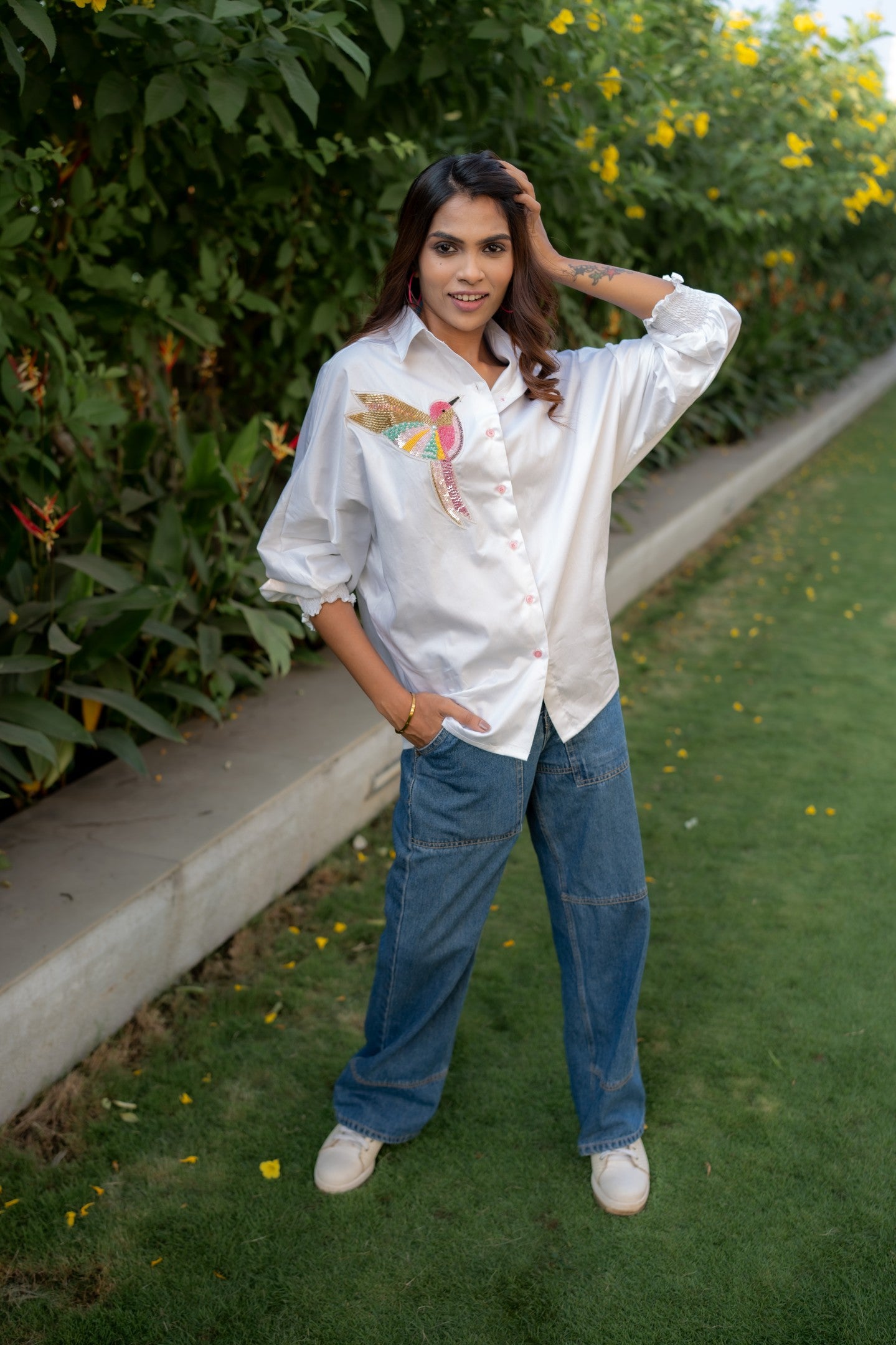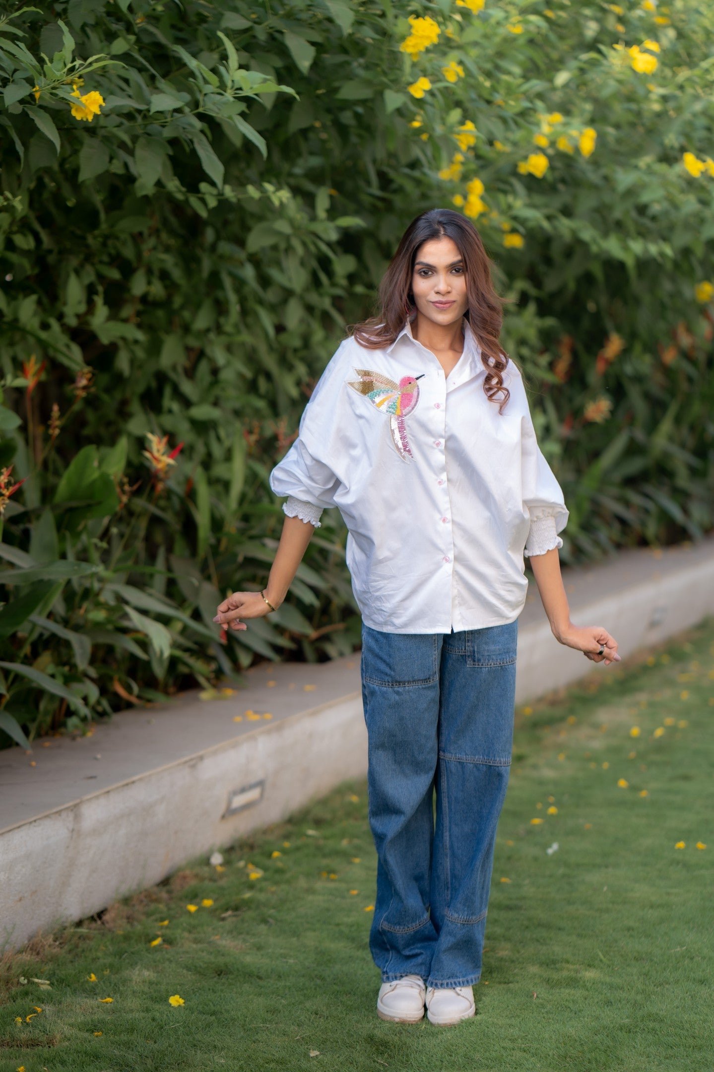 A white loose fitted shirt with embroidery is the perfect excuse to go on that shopping rendevous with your bestie.