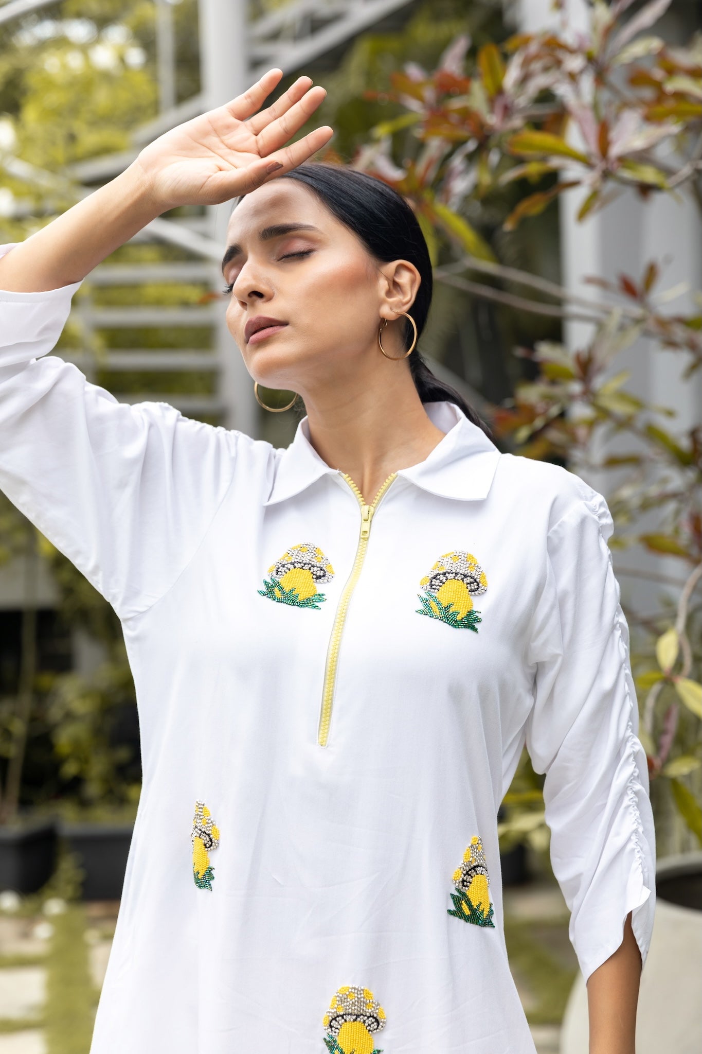 To customise the length of the shirt dress, mention the length (in inches) you need in the 'Special instructions' section of Your Cart.