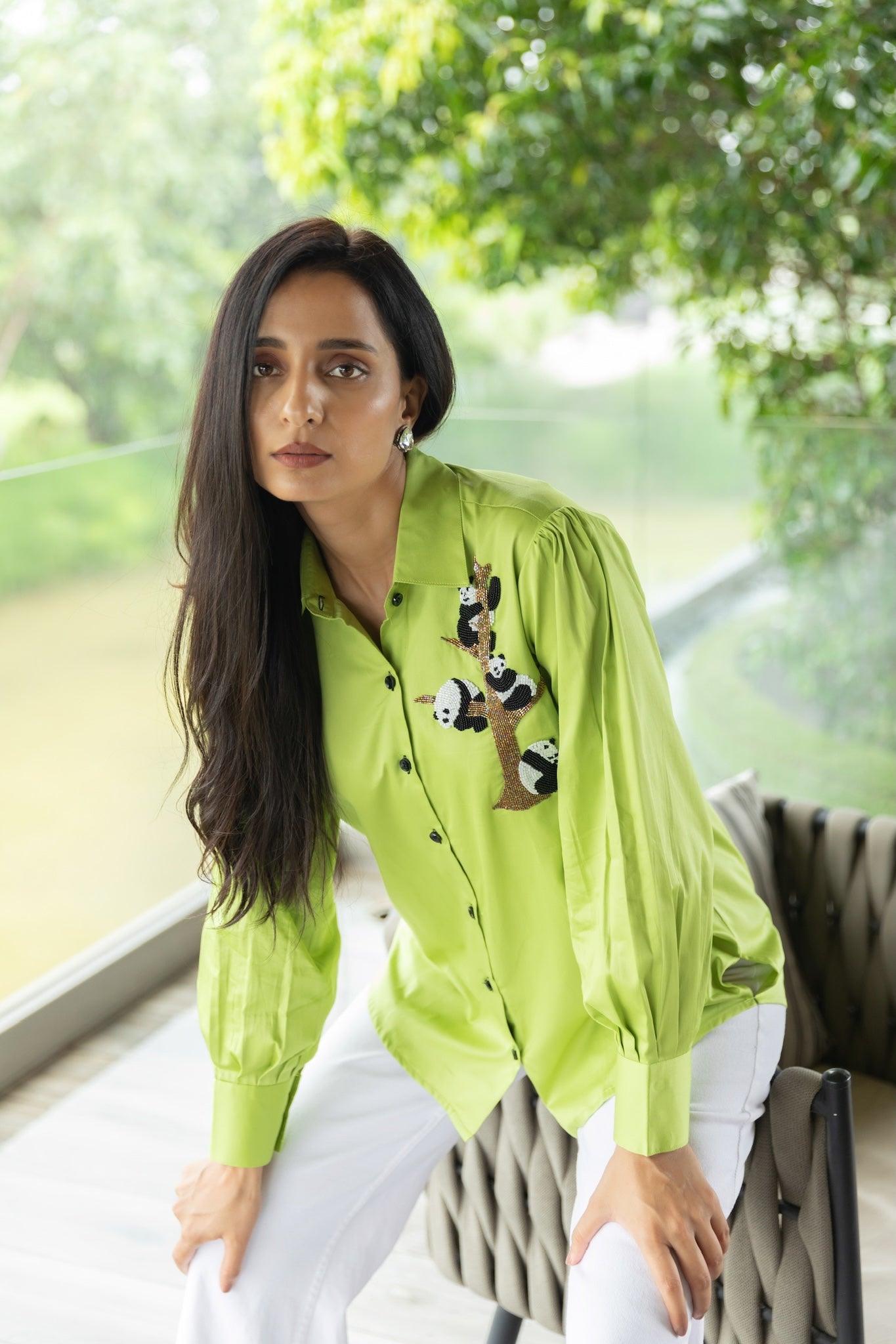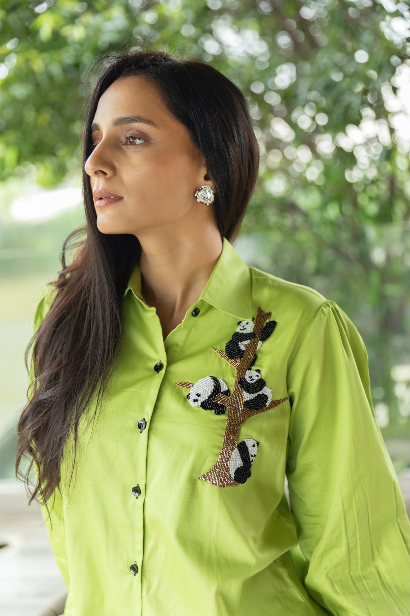 Tell tall tales in this giraffe-embroidered Serengeti Shirt. We love this mint color and the edgy embroidery is sure to add subtle funk to your wardrobe. This piece comes as a standalone shirt.